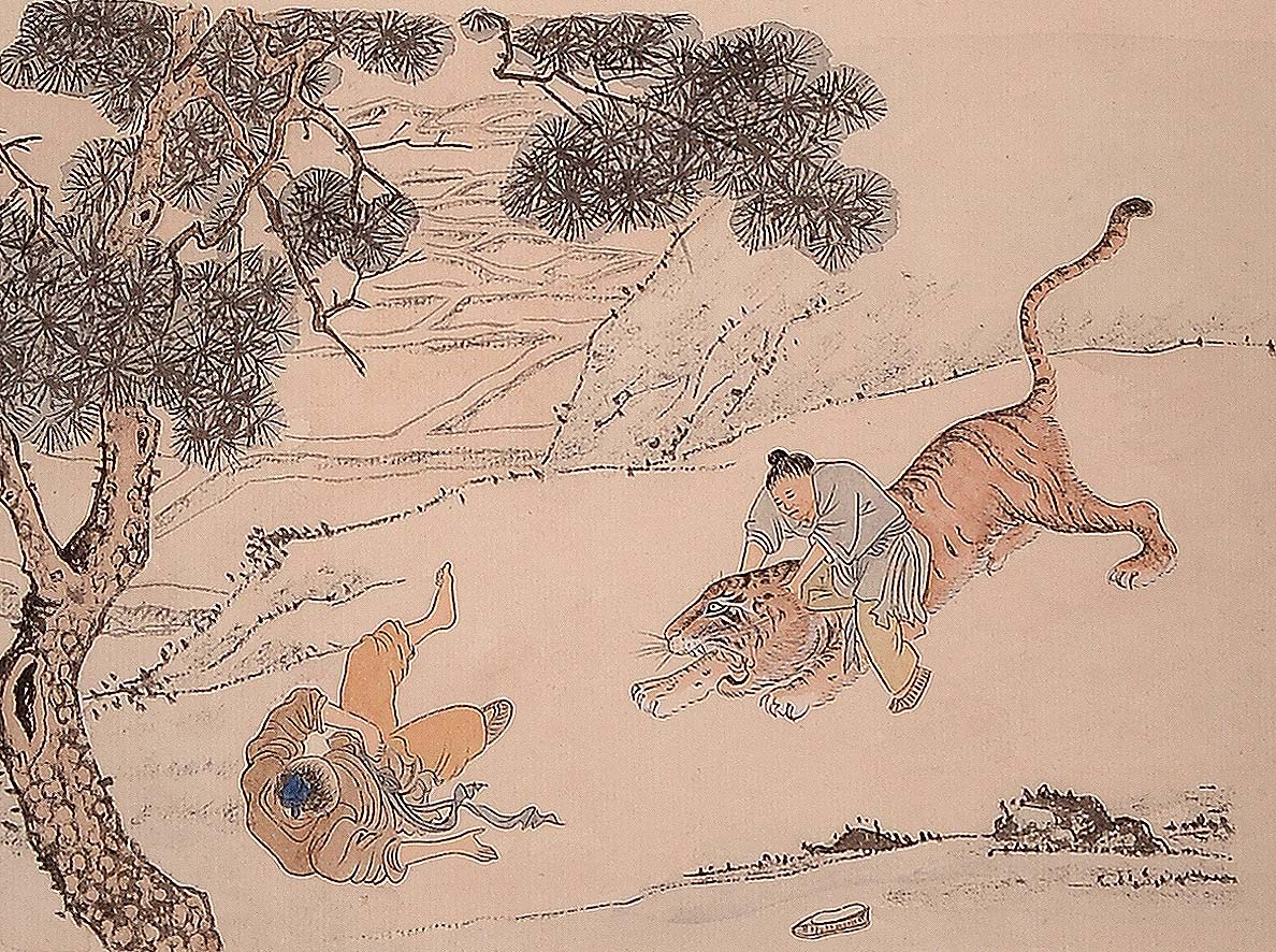 原文:晋杨香,年十四岁,尝随父丰往田获杰粟。父为虎拽去。时香手无寸铁,惟知有父而不知有身,踊跃向前,扼持虎颈,虎亦靡然而逝,父才得免于害。